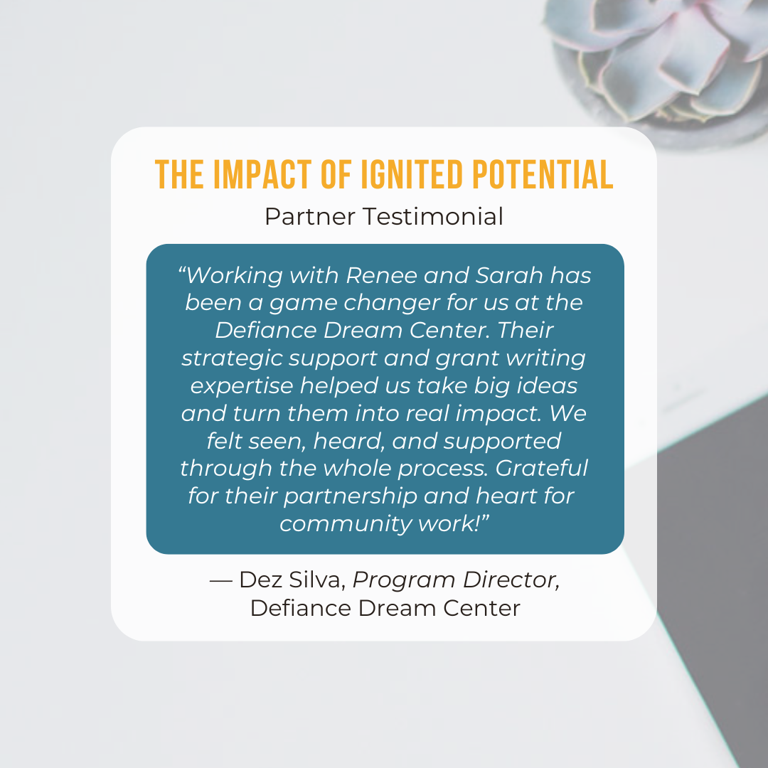 In addition, we assist our partners in identifying and securing funding through grant writing and submission services, ensuring they have the resources to bring their vision to life.